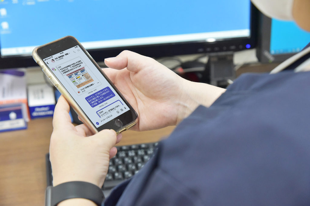 さらに、羅職種も含んだグループチャットでやり取りをするため、全員同じタイミングで最新の状況を把握でき、スピーディーなケアが可能です。また、各領域のスペシャリストとやり取りをするため、日常業務の中で自然と学習できる環境も整っています。