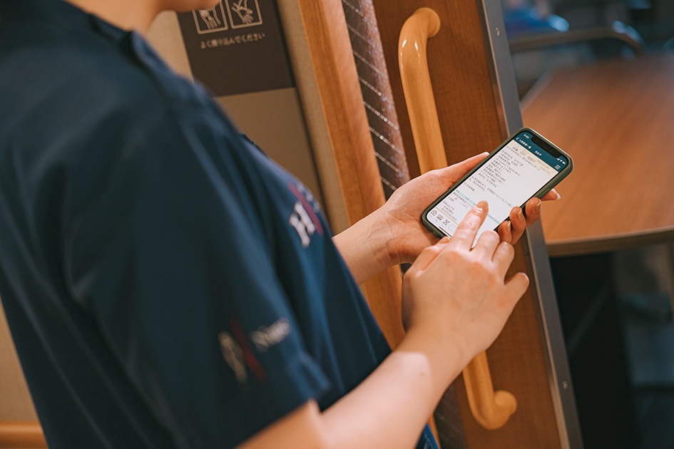 従来の連絡手段はPHSでしたが、相手が何をしているか分からない状態で電話をかけることは、お互いに気を使い、ストレスにもなります。