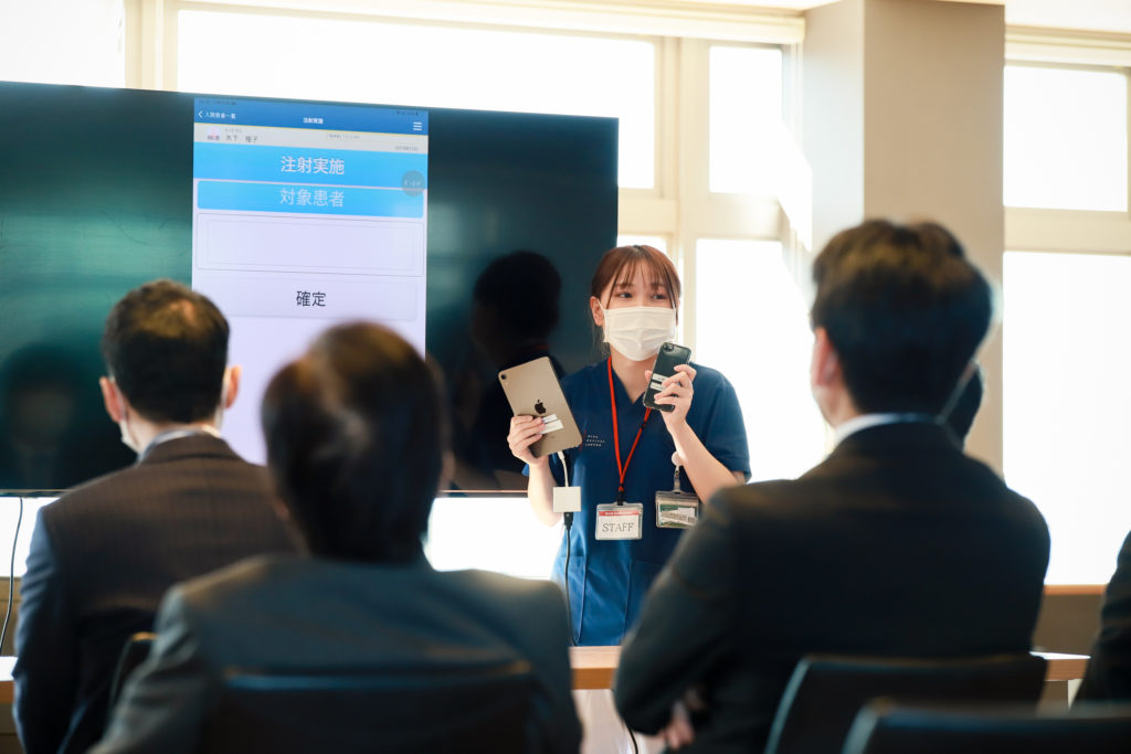 などを導入しています。他にも注射・点滴時の安全確認にiPhoneを活用するなど、より効率的に、かつ安全に医療行為が行える体制を整えています。